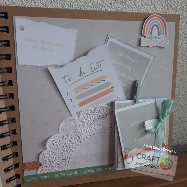 Ik heb de Mandala-Doily aan de bovenkant een beetje open gelaten zodat ik daar nog wat kaartjes in kon steken, alles komt uit hetzelfde papierblok.